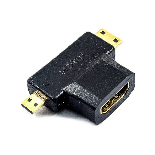 The 2-in-1 Mini HDMI and Micro HDMI adapter adapts an HDMI cable to fit into a Mini or Micro HDMI port on a smartphone, laptop, camcorder, camera, or tablet. Video resolution support up to 1440p/1080p/1080i/720p/480p. Gold plated connectors MINIHDMI AND MICRO HDMI