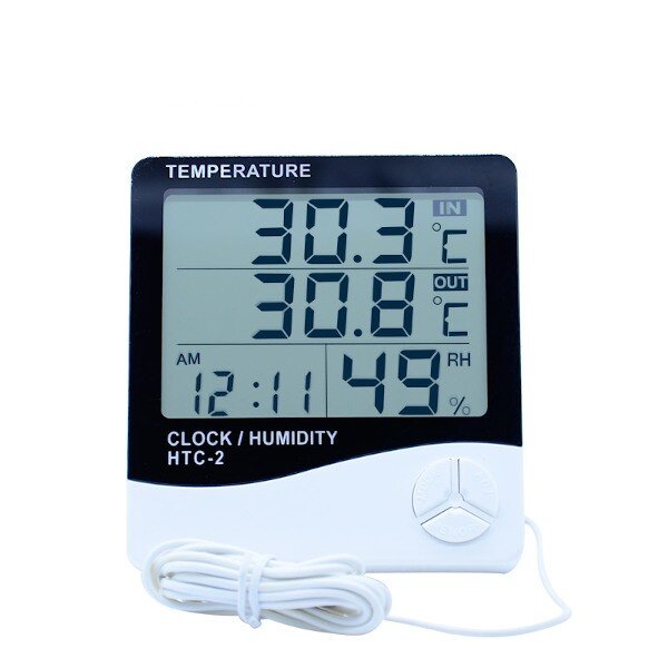 - Indoor and outdoor temperature display, indoor humidity display and time display