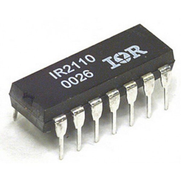 The IR2110 is a high voltage, high-speed power MOSFET and IGBT driver with independent high and low side referenced output channels. Proprietary HVIC and latch-immune CMOS technologies enable ruggedized monolithic construction. Logic inputs are compatible with standard CMOS or LSTTL output, down to 3.3V logic. The output drivers feature a high pulse current buffer stage designed for minimum driver cross-conduction. Propagation delays are matched to simplify use in high-frequency applications. The floating channel can be used to drive an N-channel power MOSFET or IGBT in the high-side configuration which operates up to 500 or 600 volts.