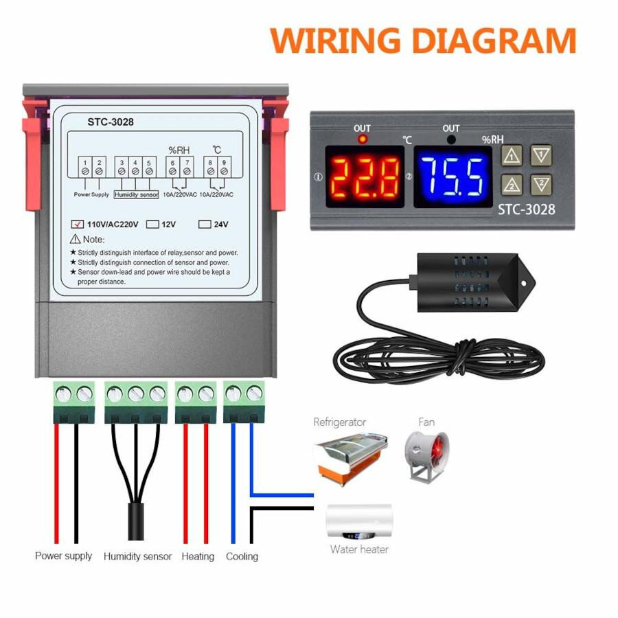 The STC-3028 Digital Humidity Temperature Controller is a versatile and precise device designed to regulate both temperature and humidity in a variety of applications. It is ideal for controlling the environment in places such as greenhouses, incubators, or storage areas, where maintaining specific temperature and humidity levels is crucial.