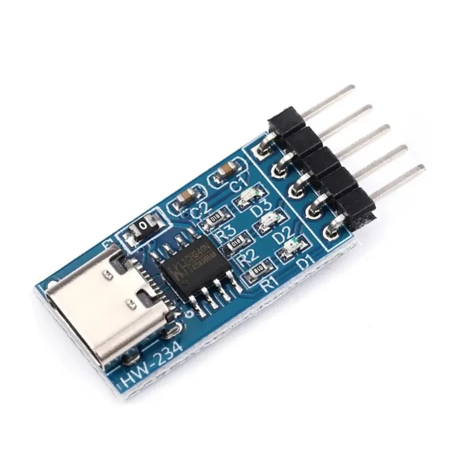 The Type-C USB to TTL Serial Converter – CH340N module is a compact and reliable adapter for connecting your computer to microcontrollers, development boards, and embedded systems. Featuring a modern USB Type-C interface and the proven CH340N USB-to-serial chip, it allows fast and stable communication for programming, debugging, and data logging.